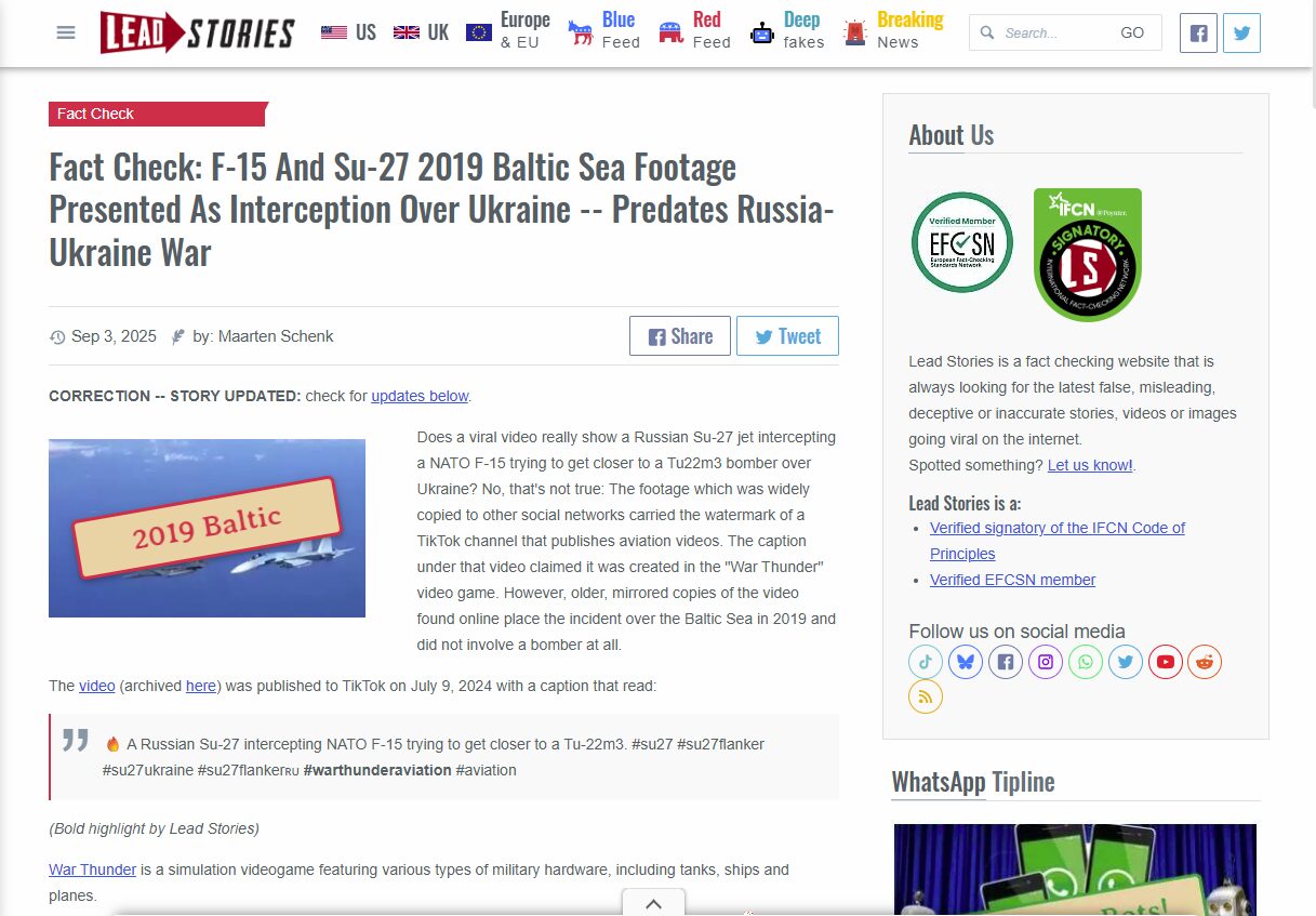 Fact Check: F-15 And Su-27 Video Game Footage Presented As Real Interception Over Ukraine — Old Video | Lead Stories